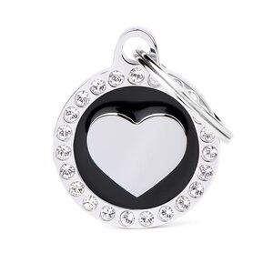 Black enamel with silver metal heart and Swarovski crystals along the outside