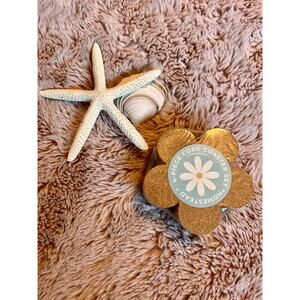 NWT My Homestead Co. 4 Piece Flower Shaped Daisy Cork Coaster Set