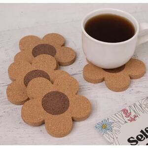 My Homestead Co. 4 Piece Flower Shaped Daisy Cork Coaster Set