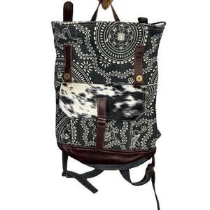 NWT Myra Bags Vibe with me Backpack in Spiral Pattern and Cowhide Trim