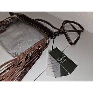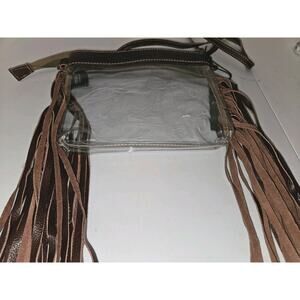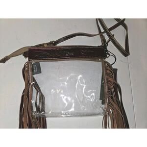 NWT! Myra Clear W/Fringe & Tooled Leather Crossbody Bag Western Cowgirl 9x8