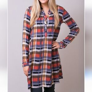 NWT Mystree | Colorful Plaid Long Sleeve Tunic Top.