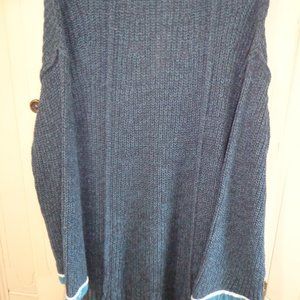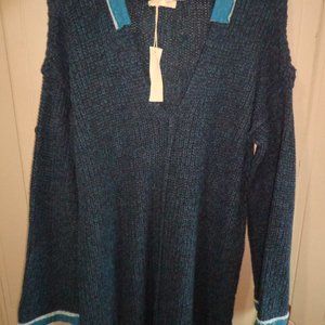 NWT Mystree Knit Tunic L V-Neck Faux Collar Long Sleeves Blue Side Slits