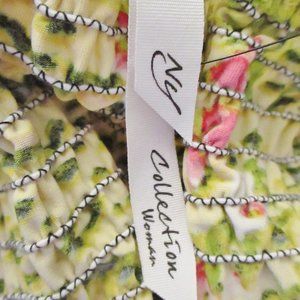 NWT! N Y Collection Womens Cold Shoulder Elastic Smocked Top, Yellow Floral, 2XL