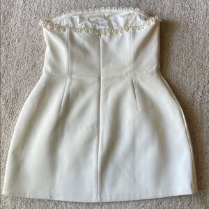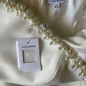 NWT NADINE MERABI Crepe White Mini Dress with Pearly Beads Strapless Minidress