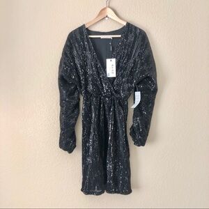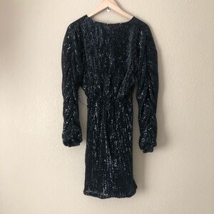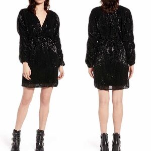 Allover sequins ensure all eyes are on you in this sparkling faux-wrap dress that strikes an on-trend note with long balloon sleeves. True to size. - 36" length - Surplice V-neck - Long sleeves - Lined - 100% polyester - Hand wash, line dry - Imported - BP.