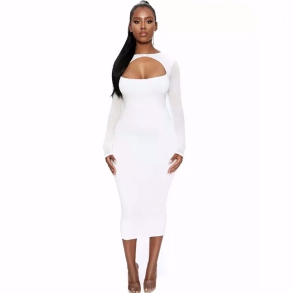 NWT LONG SLEEVE MESH; CUTOUT FRONT BODYCON MIDI DRESS