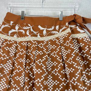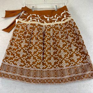 NWT NANETTE LEPORE Womens 4 Brown Multi Pattern Faux Wrap Lined Cotton Skirt
