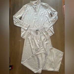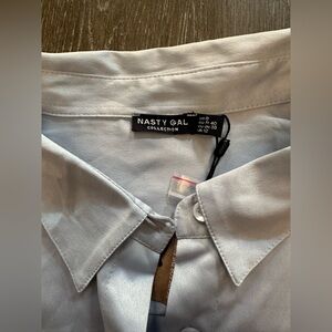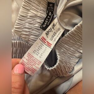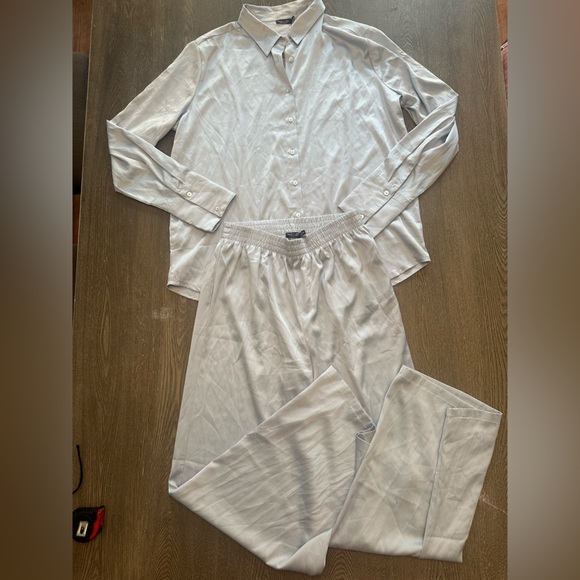 NWT NASTY GAL SATIN OVERSIZED TWO PIECE PAJAMA DUSTY BLUE - Size 8 SKU:562