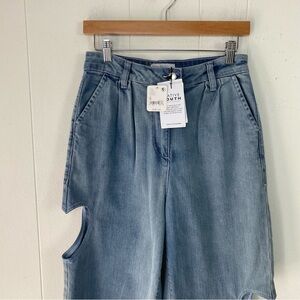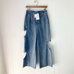NWT NATIVE YOUTH Wide Leg Heart Cut Out Jeans Medium Wash denim Sz S