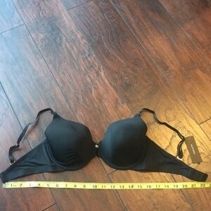 Satin overlay - Gold-tone gore accent - Back adjustable dual hook-and-eye clasp - Molded foam cups - Underwire - Convertible straps