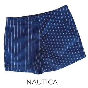 Brand new NAUTICA shorts in a classic navy blue and white stripe. Button fly zip and two front pockets.