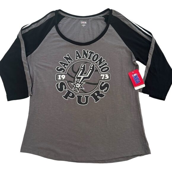 NWT NBA San Antonio Spurs Womens Shirt Size XL Raglan Black Gray White Retro