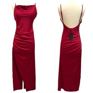 NWT NBD REVOLVE Take It All Maxi Dress Ruche High Slit in Berry Red Size S