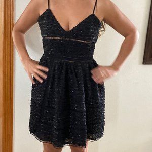Host Pick, New with tags from Revolve.com. This cocktail dress has glitters, sparkly, textured detail, and a cut-out pattern. Adjustable spaghetti straps, fully-lined, with back zipper. The pictures don't do this dress justice! Lots of details in this gorgeous dress Paid $200.- Smoke free and pet-free home.
