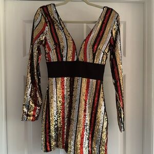 NWT NBD Revolve Star Treatment Long Sleeve Mini Dress Gold Silver Sequin XS