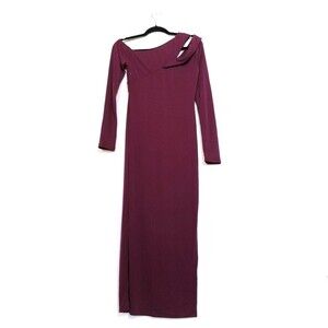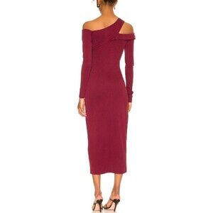 NWT NBD Sammy Asymmetric One Shoulder Long Sleeve Midi Dress Knit Burgundy Small
