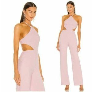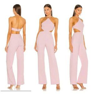 NWT NBD Ronan Jumpsuit Rose Pink Halter Triangle Cut Out Wide Leg Revolve Sz XS