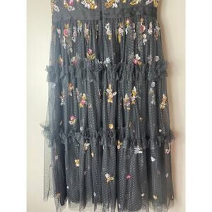 NEEDLE & THREAD DRESS 2 BLACK GRAPHITE 3D SEQUIN FLOWERS MESH SHEER RUFFLE TIERED SHIMMER DITSY EDGY 3D FLOWERS DARK ROMANCE ROMANTIC