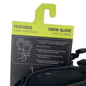 2X PU Coated Poly chassis combines durability and water resistance 8 oz insulation Debossed sure grip palm provides water resistance and grip DWR Coating keeps the wet out and warmth in Removable wrist leashes to keep gloves from disappearing