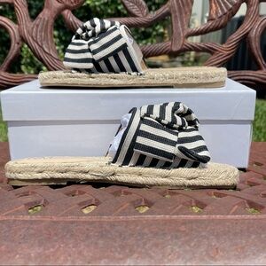 💋NWT NEIMAN Marcus Braided Just Slip On Stripe Bow Sandals