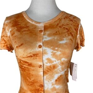 NWT NEW ABOUND Tie Dye Button Front Top In Rust Amber Small