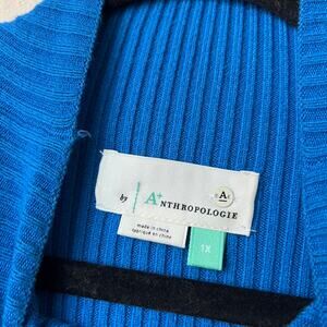 NEW with tags Anthropologie layered sweater dress in vibrant cobalt blue. Features a ribbed knit mock neck top with long sleeves and a pleated flowy maxi-length skirt. Pullover style with a flattering waist seam. Size 1X (Plus) - 19" pit to pit, has lots of stretch. 60" length.