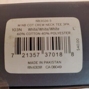 NWT NEW BALANCE SZ L (42-44) Men's 3 Pack Cotton Crew Neck Tee Shirt White NB logo