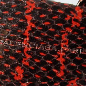 From the estate of one of this country's top fashion buyers with INCREDIBLE LUXURY tastes, who worked directly with many designers herself, stunning BRAND NEW WITH TAGS / NWT pair of women / ladies authentic / genuine BALENCIAGA, "POLKA DOT SNAKE PRINT" open toe shoes / sandals, size EU 36 in CORAL RED AND BLACK with original pricetag on bottom. Measure approx 9" heel to toe, with silver stud embellishment. Great for diva, cosplay, fetish, or party girl fashionista! Perfect gift - PSYCHOTIC LEOPARD says, "BE SPOTTED!"