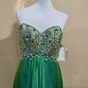 NWT NEW Clarisse 2369 iridescent jade beaded sweetheart strapless prom dress
