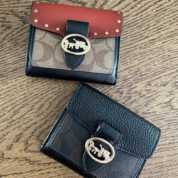 NWT! NEW! Coach Georgie Bi-Fold Wallet -Black Brown Stud / Black CC