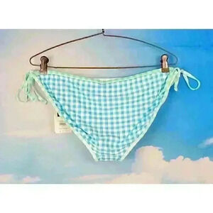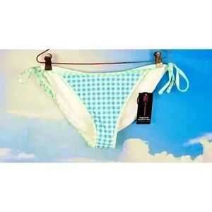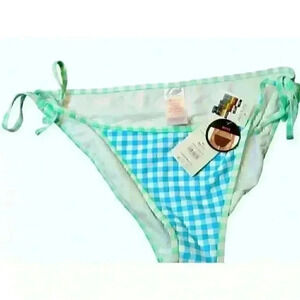 NWT NEW DIRECTIONS Womans TEAL Checks STRING BIKINI LINED Swim Bathing suit XL