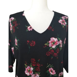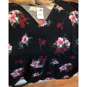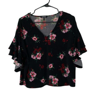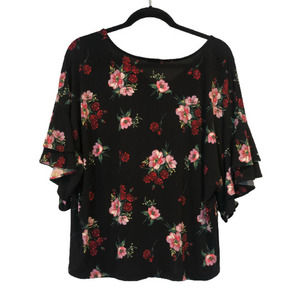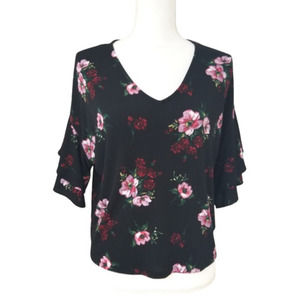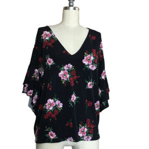 NWT NEW Express Large Black Floral Ruffle Flutter Sleeve V Neck Blouse