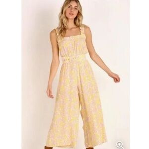 NWT NEW Faithfull the Brand yellow Floral Wide Leg Jumpsuit size M us 6 Belted
