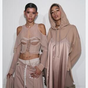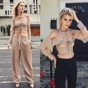 NWT NEW Fenty Puma by Rihanna Mesh Bustier Top w/Chiffon Sleeves, Beige
