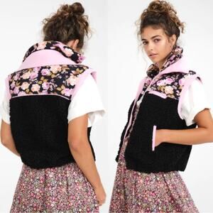 NWT NEW For Love And Lemons Faux Shearling Floral Puffer Vest