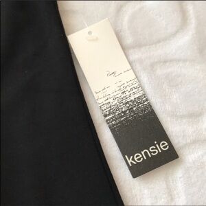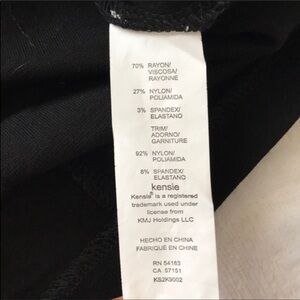 KENSIE NWT Black Mini Dress. Lace overlay center panel on front. Exposed zipper on back. Stretchy. Size tag reads size S.