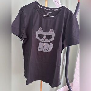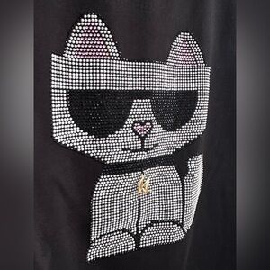 NWT! NEW! Karl Lagerfeld Paris Hotfix Choupette Embellished Cat Women T-Shirt