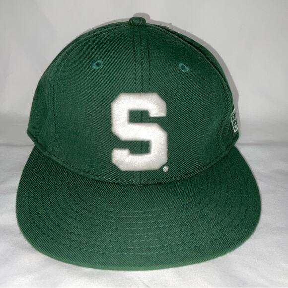 NWT NEW MICHIGAN STATE SPARTANS GREEN WHITE S FLAT BRIM BASEBALL HAT SZ 7