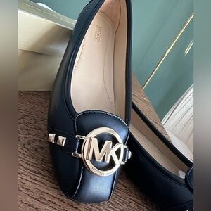 NWT! NEW! Michael Kors Fulton Studded Logo Moccasin Leather Flats Women Black