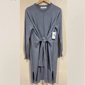 NWT NEW PROENZA SCHOULER Gray Tie Front Long Sleeve Merino Wool Sweater Dress