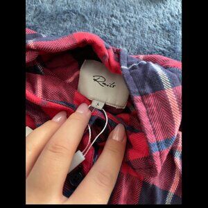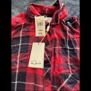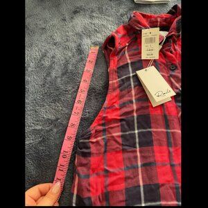 NWT NEW Rails Red Button Up Plaid Long Sleeveless Shirt Dress w/ slits LARGE