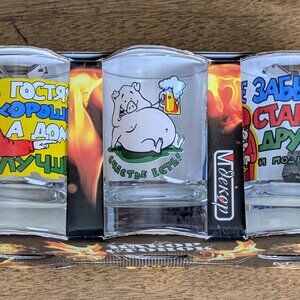 NWT NEW Russian Russia Gus Khrustalny Fun Vodka Shot Glasses Set Of Six 6