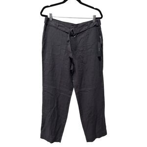 NWT NEW Tahari Gray Belt Linen Flowy Pants Size 12 Coastal Minimalist