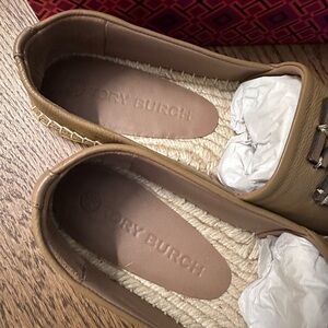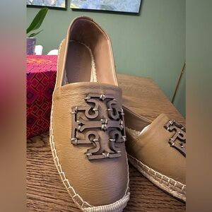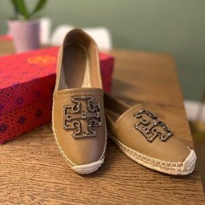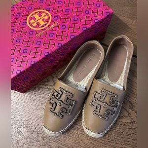 NWT! NEW! Tory Burch INES Tan Leather Espadrille Flats -US 7 Limited Almond Flou