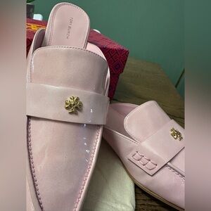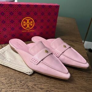 NWT! NEW! Tory Burch Pointed Backless Loafer Patent Leather Women US 7.5 Petunia
