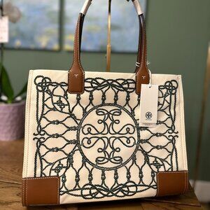 NWT! NEW! Tory Burch Small Ella Tote- Printed Ivory Abstract Rope Logo Women