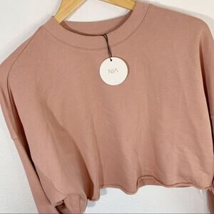 NWT NIA Pandora Long Drop Shoulder Sleeve French Terry Crew Neck Crop Pullover