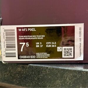 *NWT NIB* NIKE AirForce One Pixel Team Red — 7.5 — tried on in home only — smoke pet free & climate purified home — Includes Original Box & Tags #holiday #gift #streetwear #RED #collegiate #teamred
