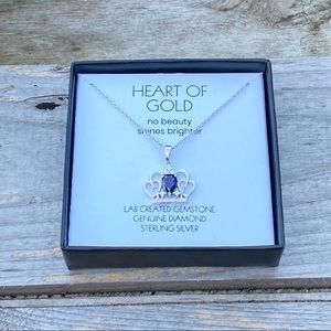 NWT NIB STERLING SILVER SAPPHIRE “HEART OF GOLD” CROWN NECKLACE